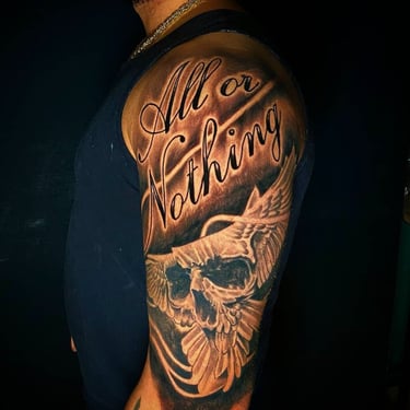 Kişiye özel siyah tonlarda dövme tasarımları.